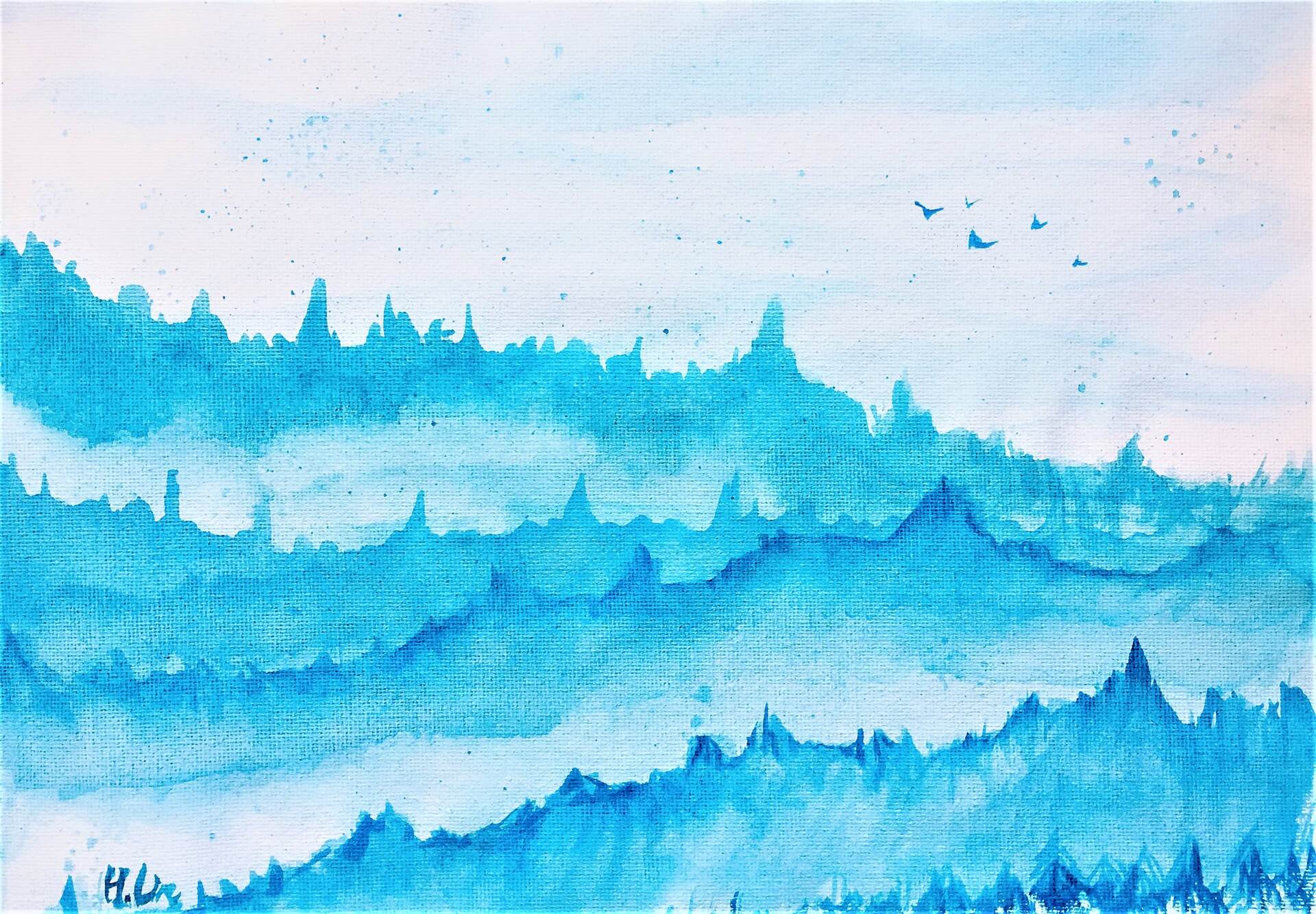 Artist acrylic on premium quality triple coated acid free 410 g/m2 canvas. Sealed with clear spray varnish. Sides painted blue and brown as undertone. Ready to hang. Comes with certificate of authenticity