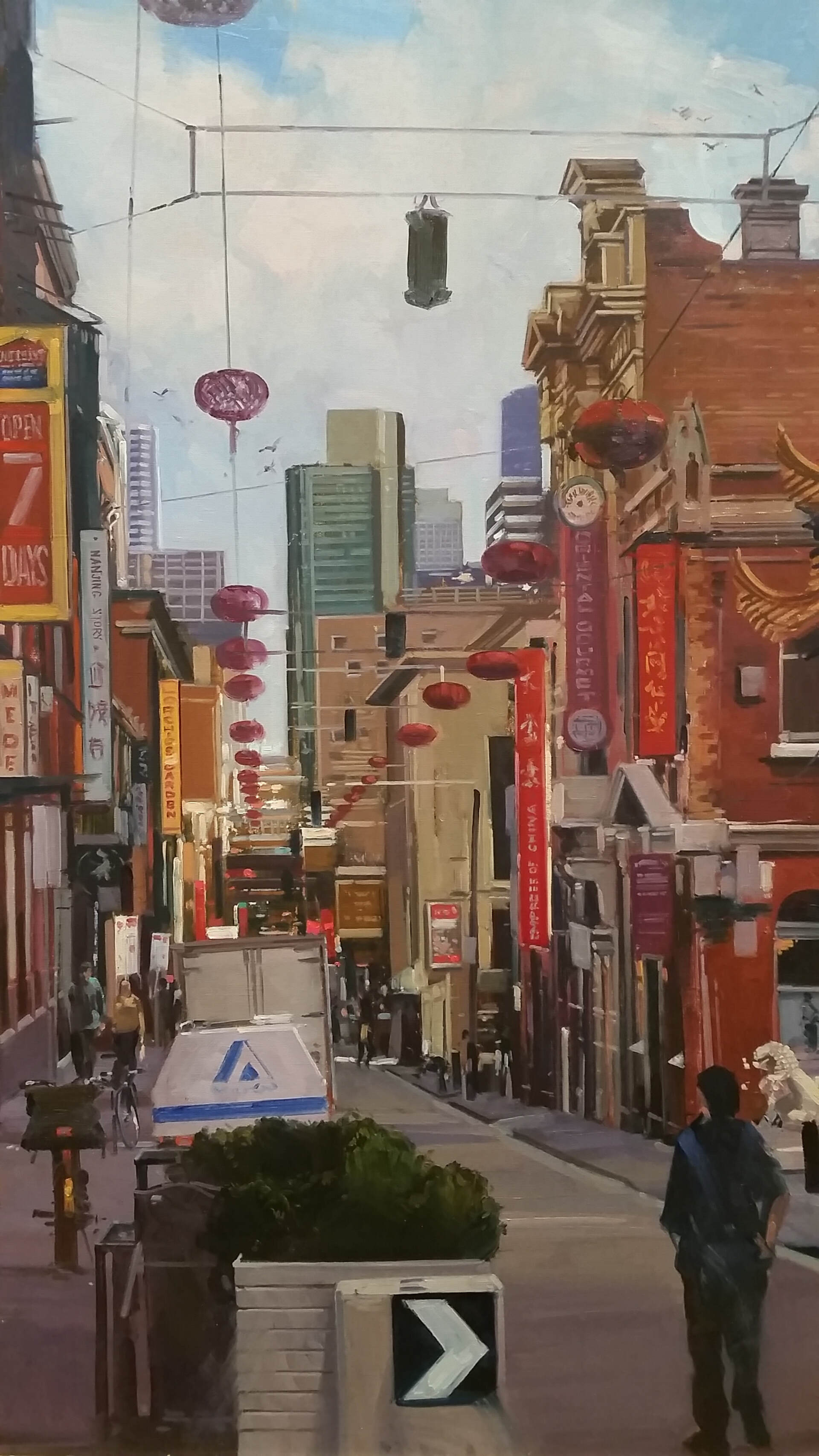Study of Little Bourke Street during lockdown done from on-site sketch and finished in studio
