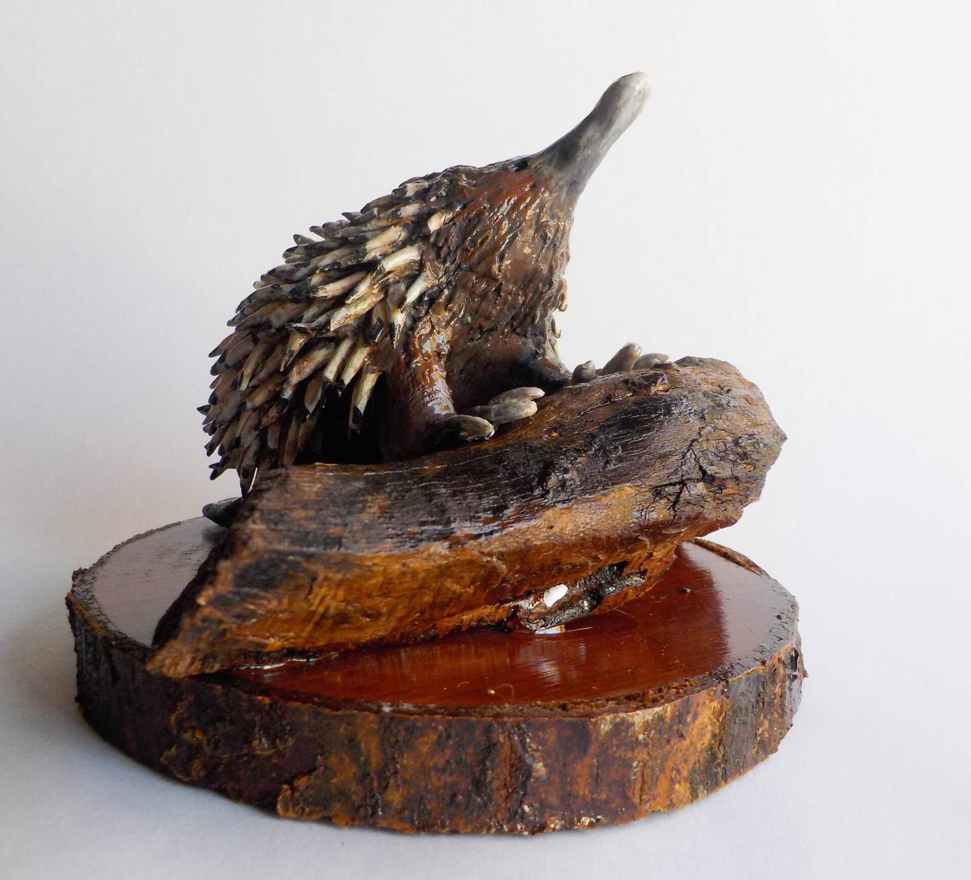 Small format/sculpture of an echidna hunting for white-ants.