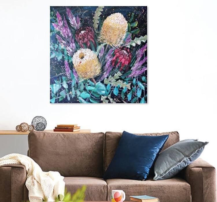 Artist Acrylic on triple primed gesso acid free stretched gallery wrapped canvas, painted with palette knife and brushes. Artwork painted extend to side panels. Sealed with varnish. Signed at front and ready to hang. Comes with certificate of authenticity.