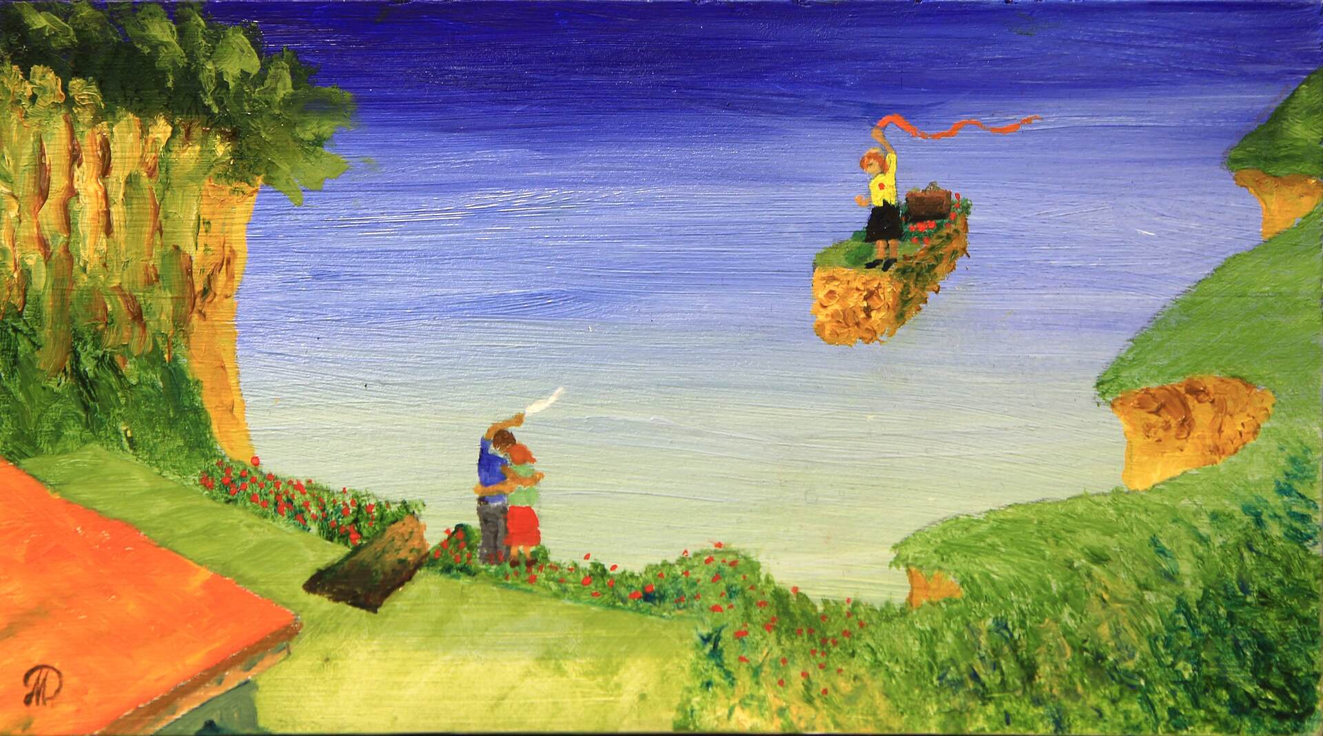 The inspiration here is the emotional push and pull of my children leaving home to start a new independent life. The child takes part of the family tradition and beliefs and leaves a huge emotional hole symbolised here with earth.